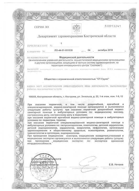 Среди предлагаемых комплексов процедур вы можете выбрать остеопатию, лечебный массаж. После лабораторных изысканий мы сможем быстро предоставить бумаги с результатами, поскольку в клинике имеется своя лаборатория.